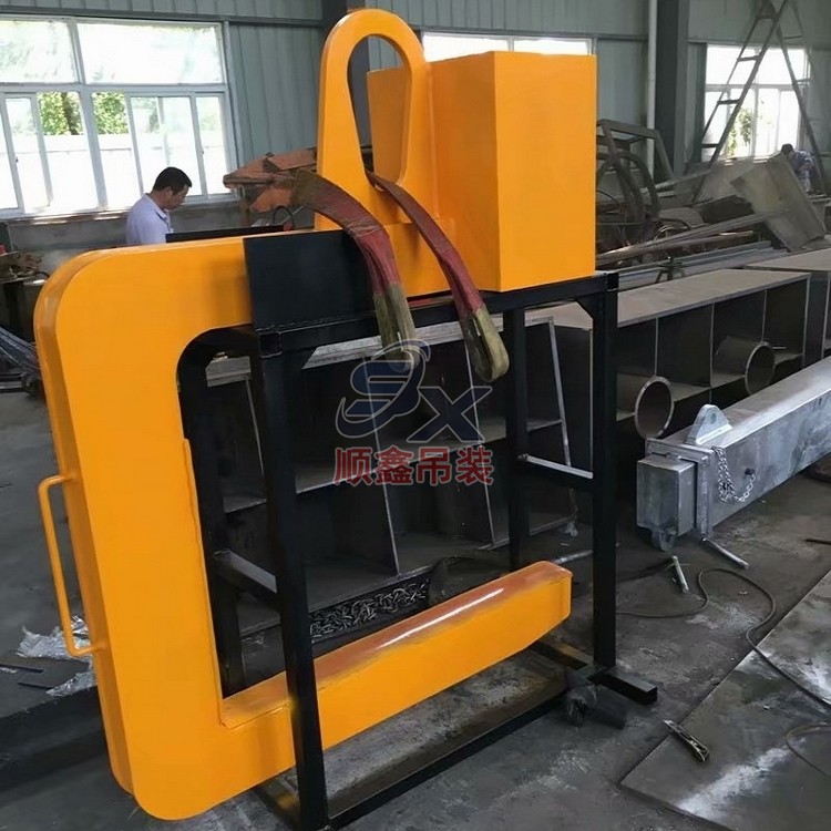 翻轉吊具通過機械剪力原理,對立式擺放的卷鋼進行單邊抓取,來完成卷鋼的裝卸,當改變重力點時,可以對卷鋼進行翻轉,作業時不傷鋼卷。其吊耳采用加厚處理,焊縫飽滿牢固、延長使用壽命。